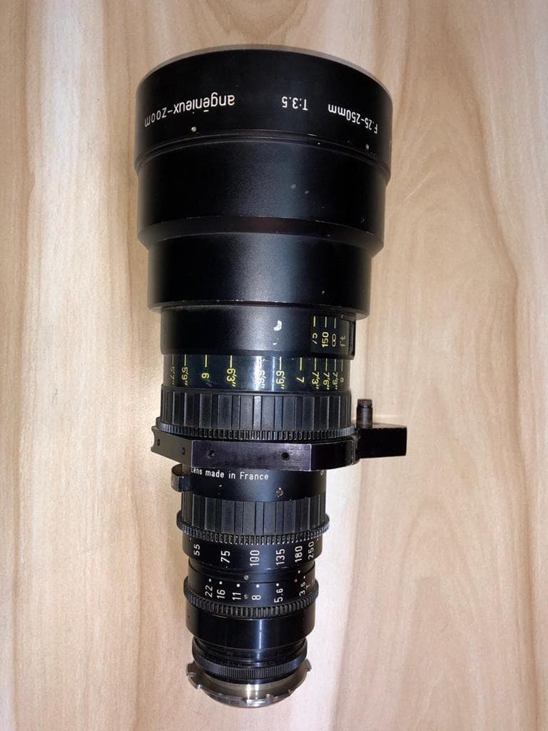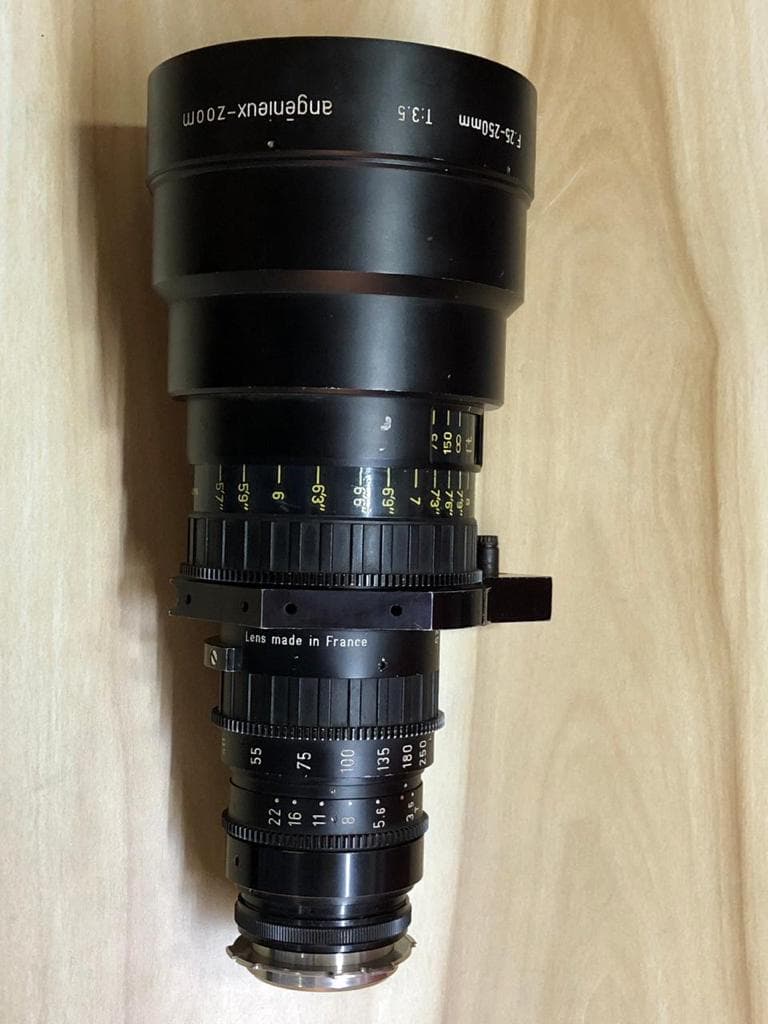 Angenieux 25-250mm HR Zoom Lens Technical Specifications Mount: PL Focal Range: 25-250 mm Iris: T3.5 Front Diameter 156 mm Close Focus: 5 ft 7 in Focal Rotation: 280° Length: 12.2 in Weight: 10.5 lbs